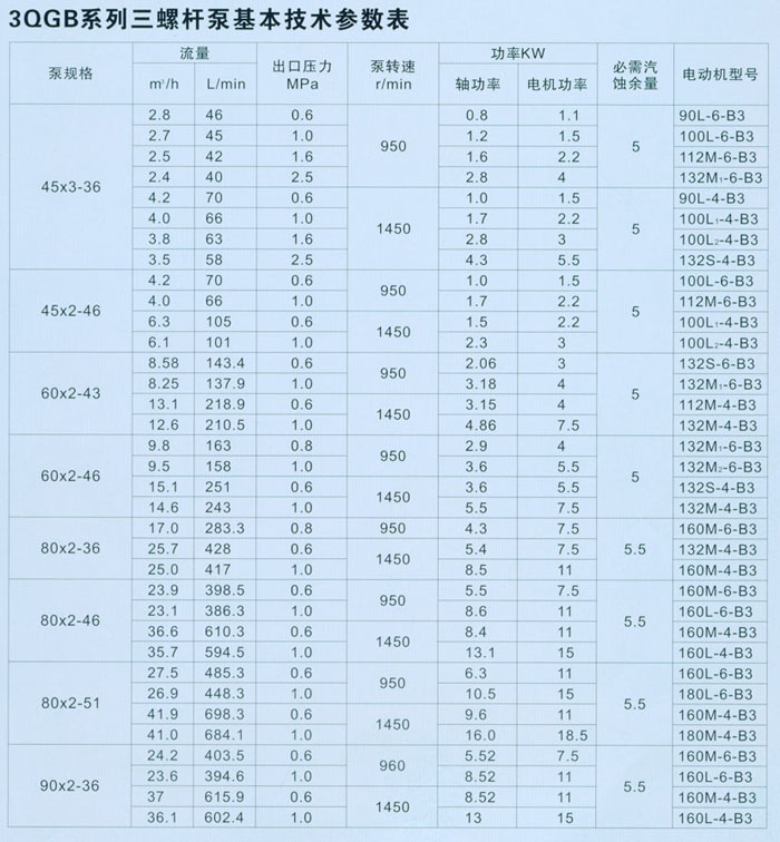 3QGB三螺桿瀝青保溫泵適用于各種無腐蝕性油類及類似油和潤滑性液體。輸送液體的粘度范圍一般為3.0-760mm2/s(1.2-100oE),高粘度介質(zhì)可通過加溫降粘后輸送。其溫度不超過350℃。流量范圍0.2-600m3/h,良好高工作壓力可達6.3MPa。